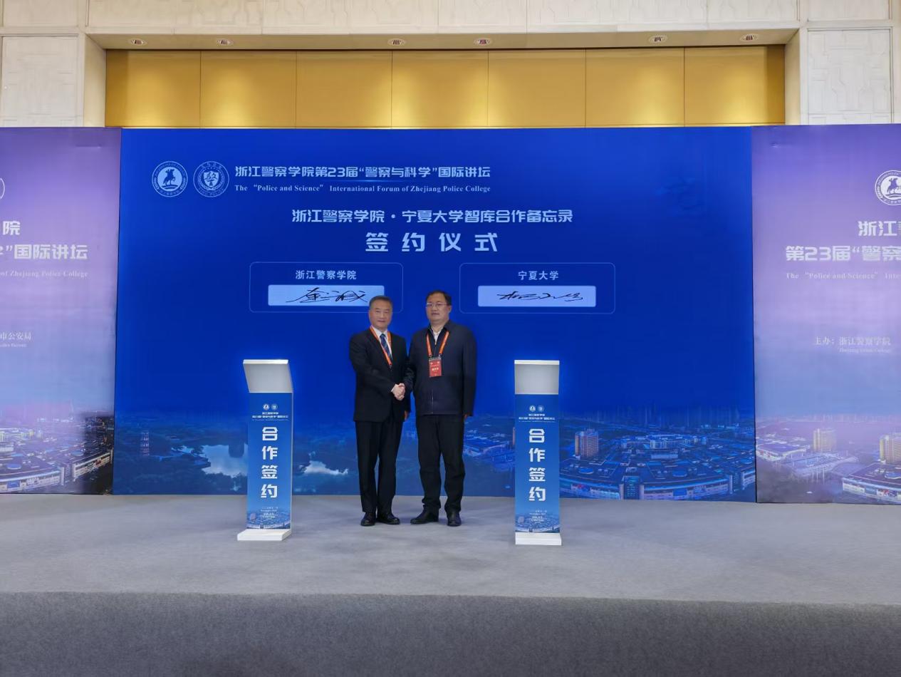 我校校党委常委、副校长杨文法、阿拉伯学院院长李绍先、副院长周丽娅、张前进和刘国熙等五位老师受邀参加开幕式相关活动。会议期间,宁夏大学党委常委、副校长杨文法代表宁夏大学与浙江警察学院签署《宁夏大学与浙江警察学院智库合作备忘录》。在主旨报告环节,阿拉伯学院院长李绍先为参会人员做了《动荡与变化中的中东:历史与现实》的专题报告。